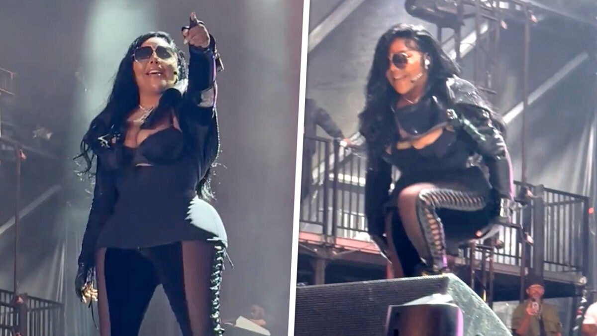 Lil' Kim zorgde tijdens haar optreden op het ONE Music Festival in Atlanta voor een verrassende wending. Tijdens haar show merkte ze dat haar slipje niet zo Lil' was als ze zelf dacht waardoor het langzaam over haar knieën naar beneden zakte.