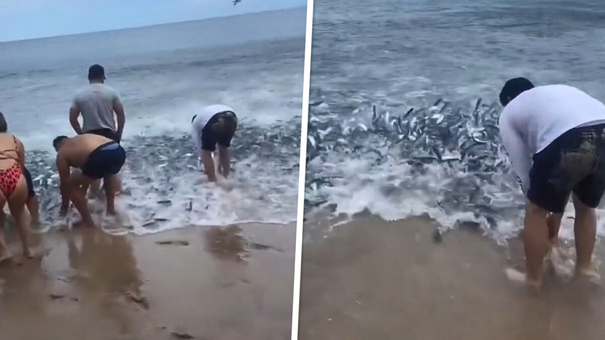 Strandgangers op het strand in Delray Beach (Florida) werden onlangs op een spectaculaire vertoning getrakteerd. Duizenden vissen sprongen uit de golven tijdens de zogenaamde 'mullet run'.