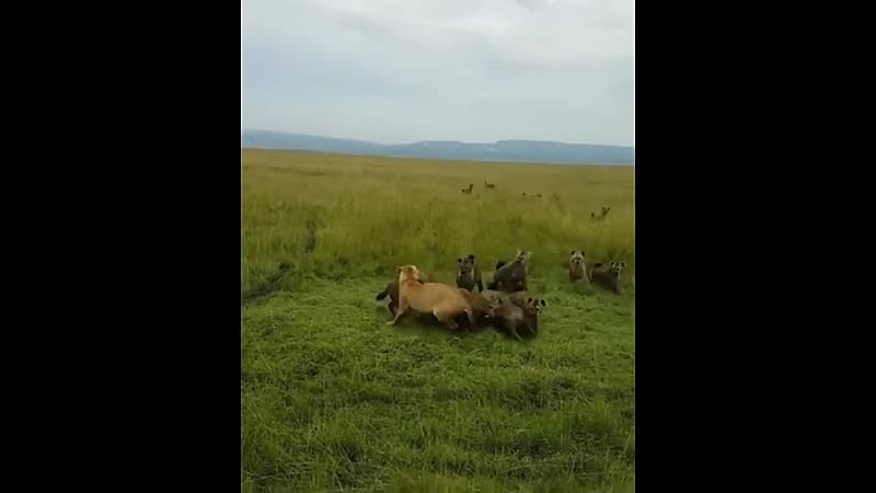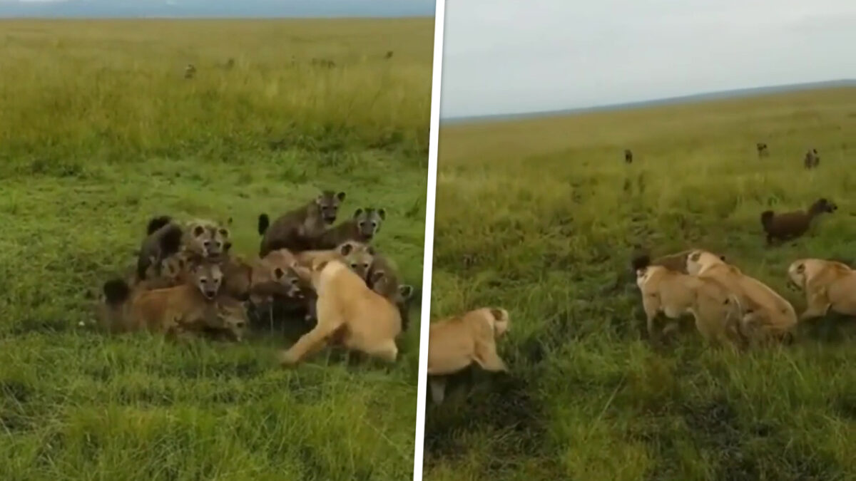In principe staat de leeuw bovenaan de voedselketen, maar als leeuwin doe je niet zoveel tegen een groot aantal hongerige hyena's. Gelukkig was haar troep niet ver weg en werd de orde alsnog hersteld.