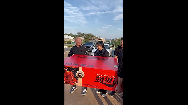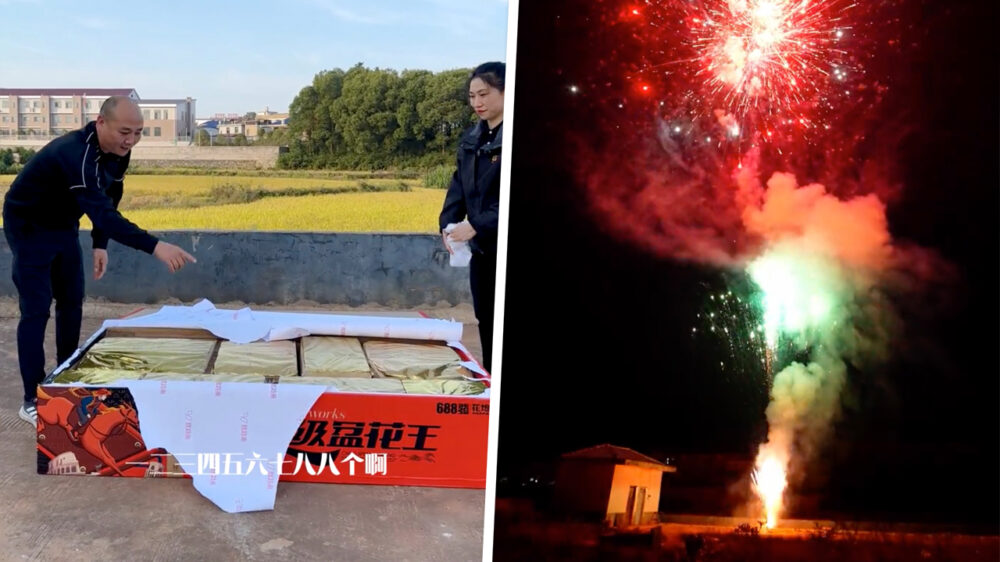 Chinezen demonstreren de kracht van hun gigantische vuurwerkcake