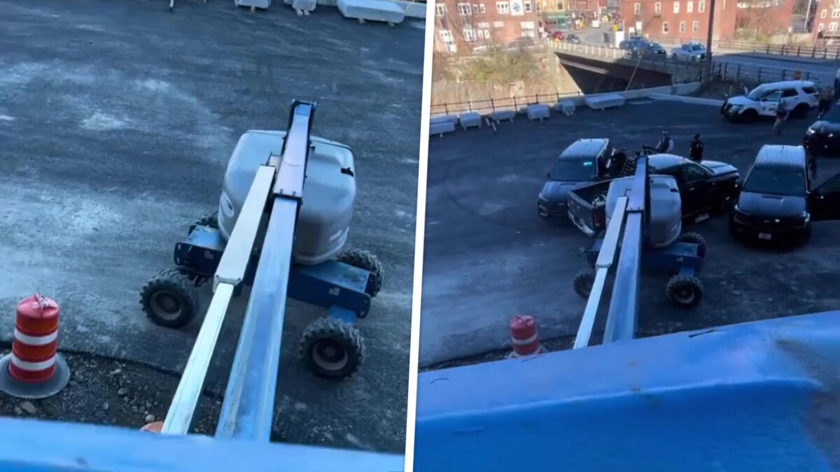 Een politieachtervolging eindigt op een bouwplaats waar toevallig een bouwvakker bezig is vanuit een kraan. De verdachte probeert nog gauw te vluchten maar raakt het onderstel van de kraan, waarna hij door de politie in zijn kraag kan worden gevat. De bouwvakker komt met de schrik vrij.