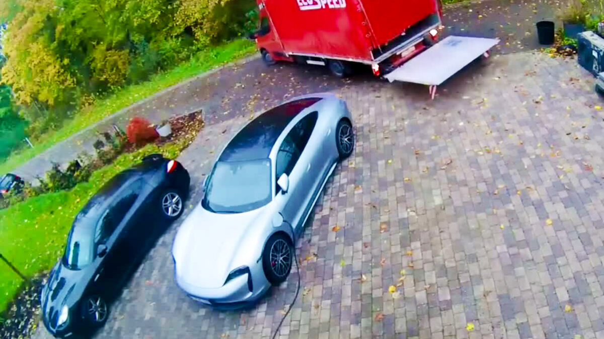 Porsche Taycan toegetakeld door vrachtchauffeur in het Belgische Rossignol