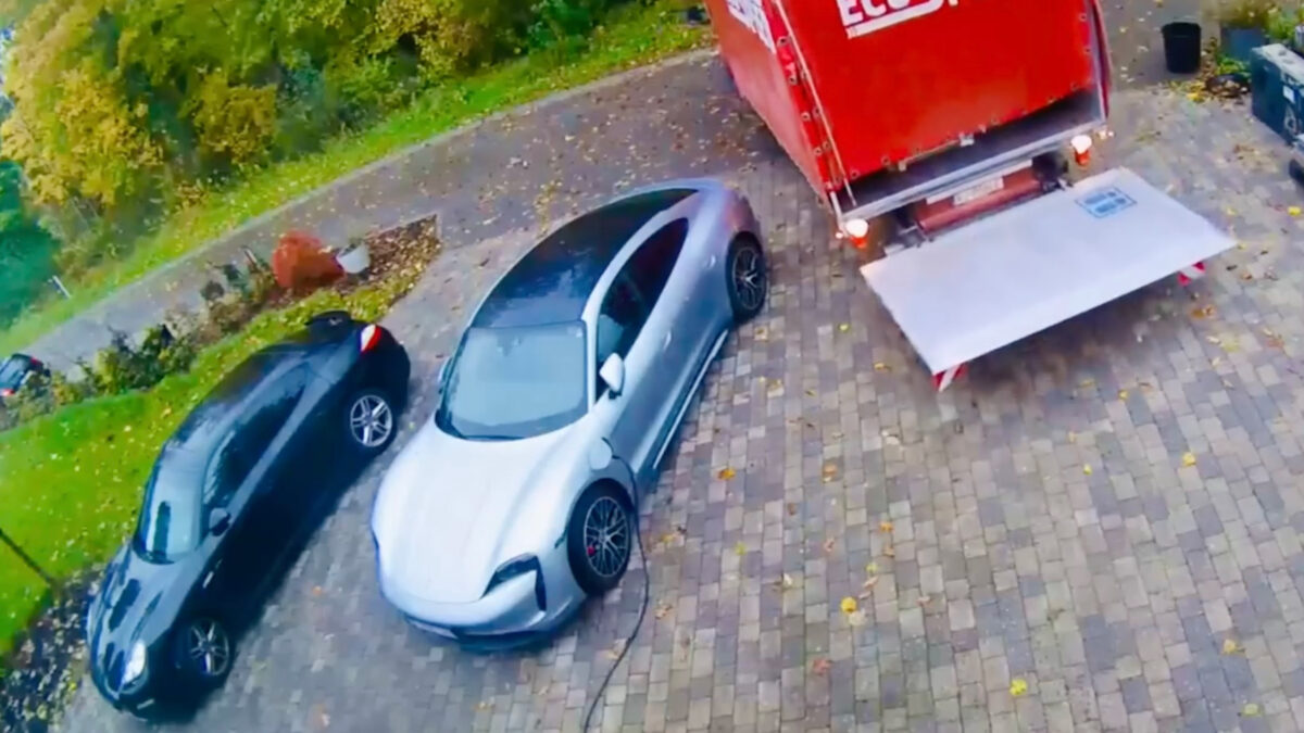 Porsche Taycan toegetakeld door vrachtchauffeur in het Belgische Rossignol