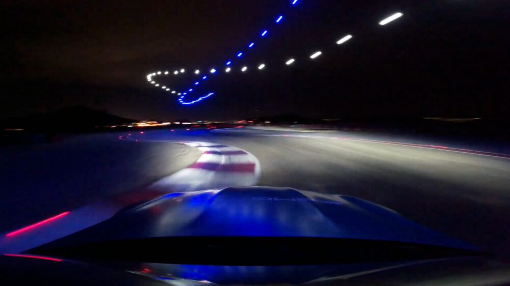Dit weekend wordt er weer volop geracet in Las Vegas en in de aanloop naar dit evenement hebben Lewis Hamilton en George Russell de eer om door een tunnel van drones te knallen.