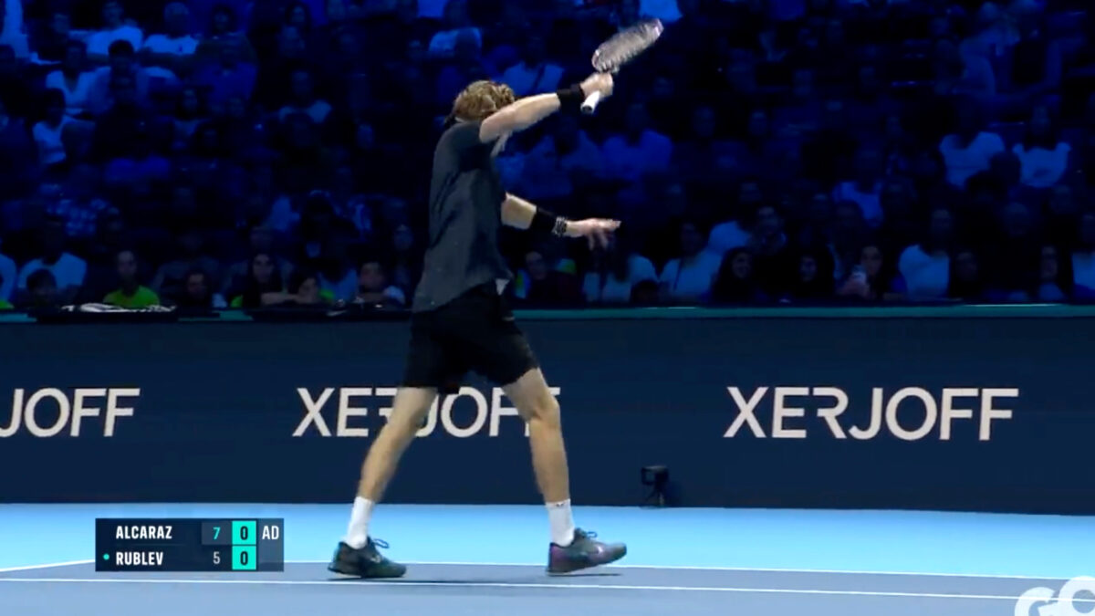Tijdens de ATP Finals ging het in de eerste set tussen Carlos Alcaraz en Andrey Rublev behoorlijk gelijk op, maar na de service van Rublev op 5-5 te breaken haalde hij de set met 7-5 binnen. Nadat Rublev ook meteen zijn service in de eerste game van de 2e set verloor, knapte er blijkbaar iets in zijn bovenkamer waarna hij pislink zijn knie sloopte.