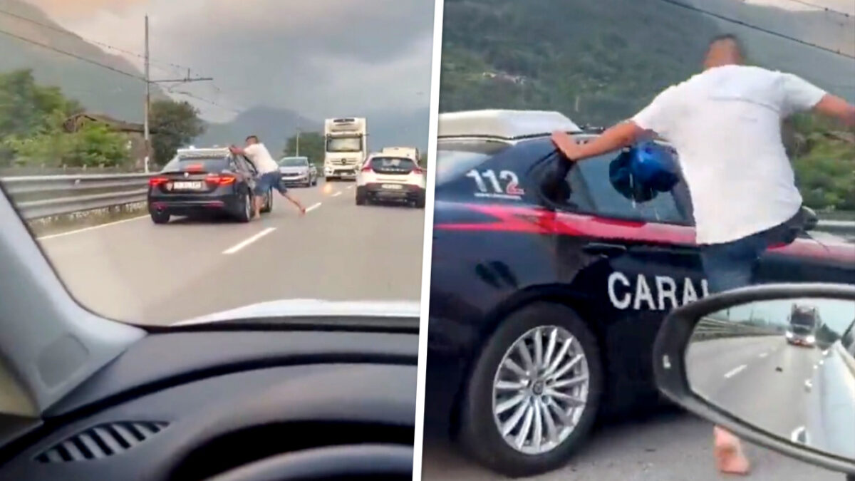 Woedende Italiaanse reus gaat compleet los op een politieauto