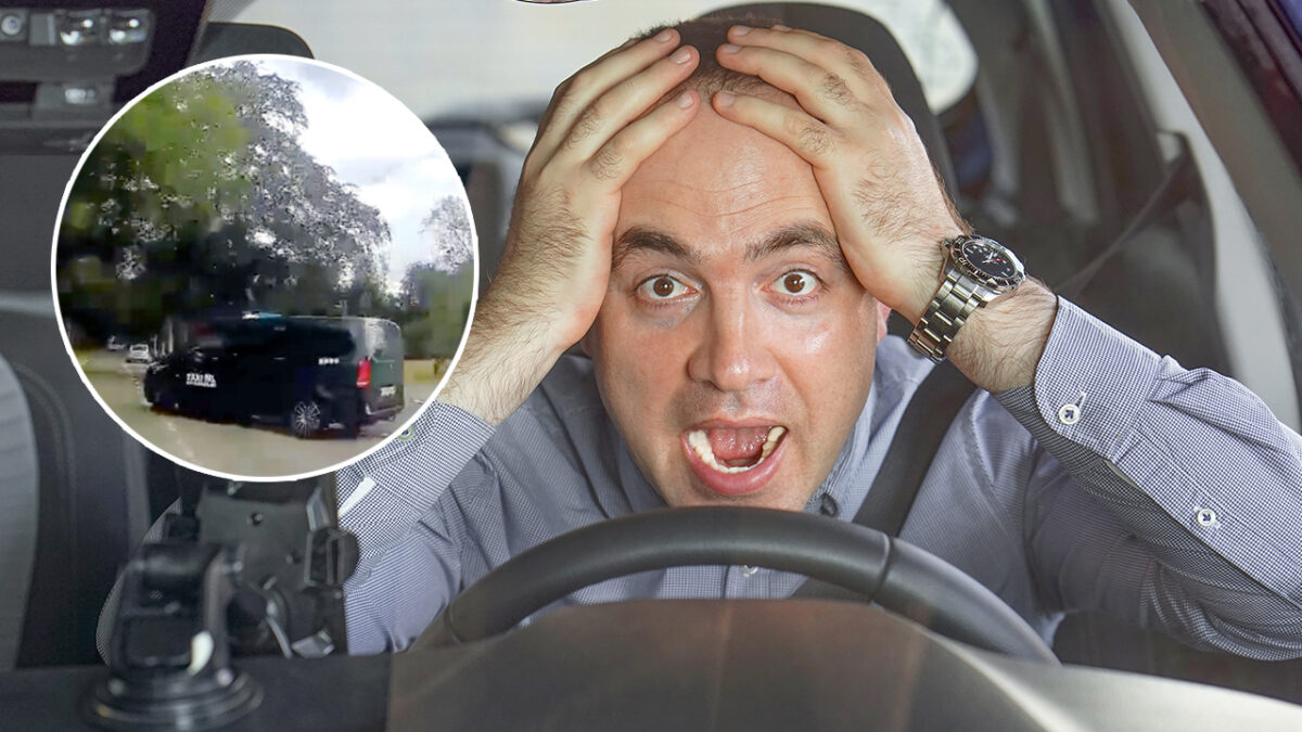 Belgische taxichauffeur draait zijn busje zonder te kijken de weg op