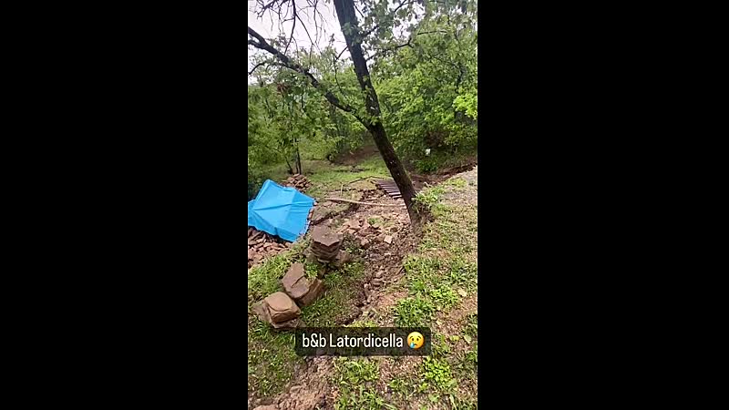Na veel regen rondom de Italiaanse plaats Castel del Rio eerder dit jaar ontstond er een gigantische aardverschuiving waarna de halve B&B "Latordicella" meters naar beneden schoof.