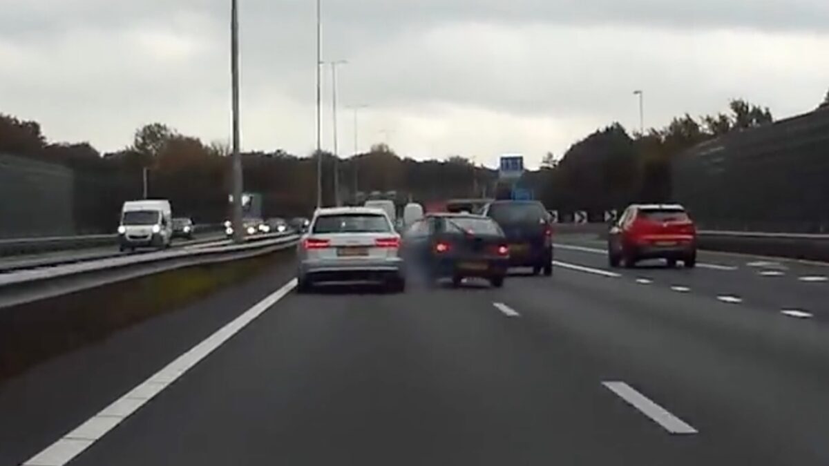 Suzuki-rijder neemt wraak op bumperklevende Audi op de A1 en beukt vol in zijn zijkant