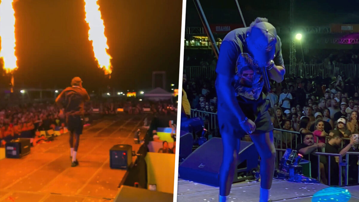 Broek van Braziliaanse rapper Djonga vliegt in brand tijdens z'n optreden