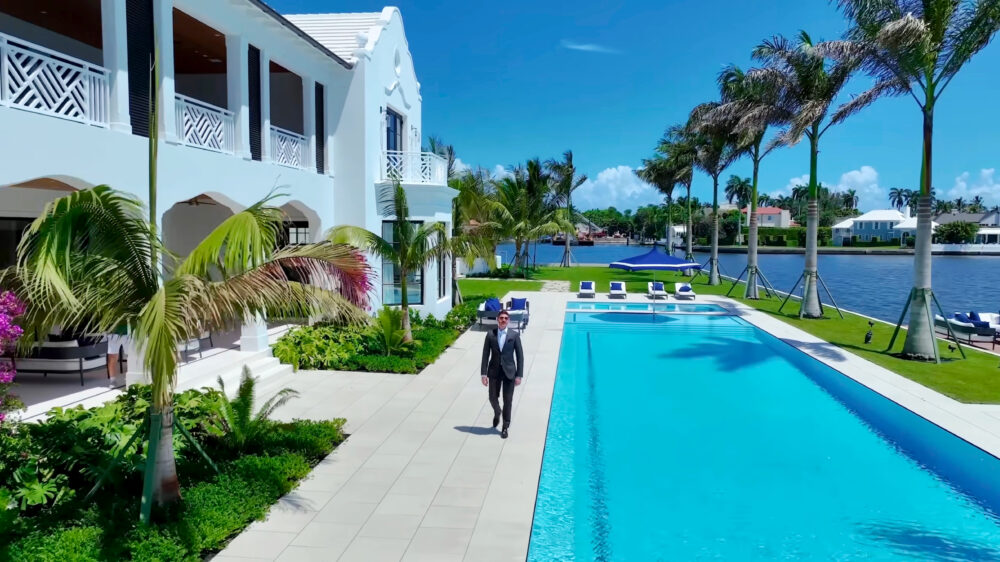 Dit spectaculaire landgoed van meer dan 2,2 hectare is het enige privé-eiland in heel Palm Beach. Naast een schitterend uitzicht, en geen gezeik van buren, heeft dit stekkie nog veel meer te bieden. Wat dacht je van 15 badkamers, een garage voor 5 auto's, een zwembad met spa, sauna, verlichte tennisbaan, bar, entertainmentkamer en ga zo maar door. Kortom; alles wat je hartje begeert is aanwezig en dat allemaal voor dit meeneemprijsje!