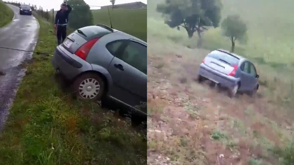 Een auto uit de berm trekken gaat niet geheel zoals gepland