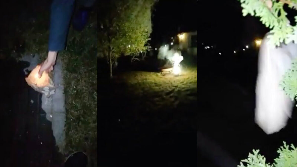 Duitser steekt een vuurwerkje af en krijgt een stuk hout op z'n smoel Fun