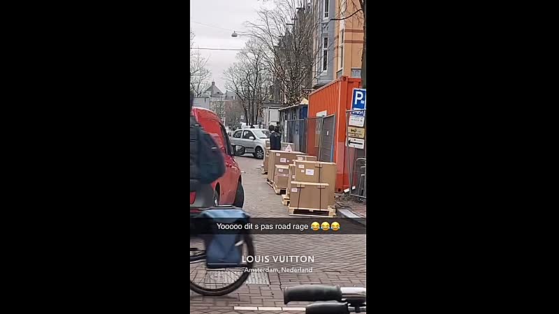 Context ontbreekt, dus het zou een road rage kunnen zijn, maar aan de glimlach van de voetganger tijdens het weglopen te zien zou het ook zomaar een uit de hand gelopen geintje tussen twee vrienden kunnen zijn. Oordeel zelf!
