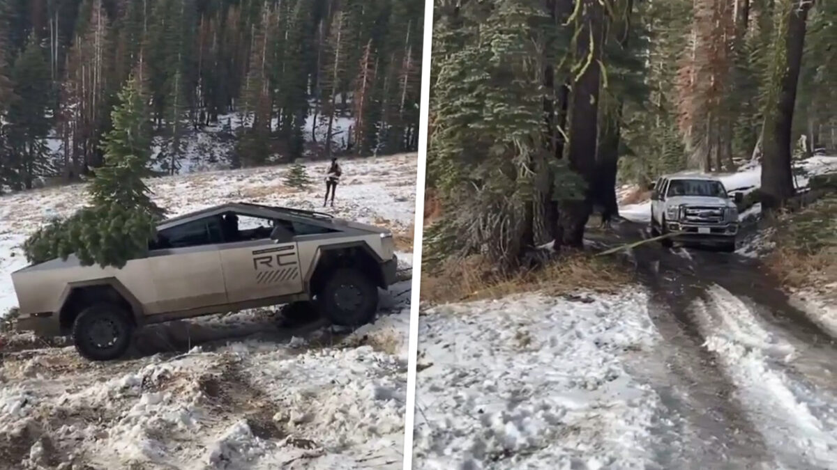 Enig minpuntje is misschien wel dat de 5,68 meter lange en 2,2 meter brede Cybertruck wel hulp nodig heeft van een Ford pick-up om een besneeuwde heuvel op te komen. Ach, je kan ook niet alles hebben.