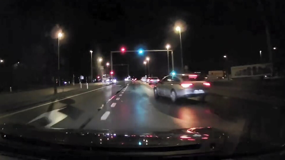 Belgische wegpiraat besluit voor het stoplicht nog snel van baan te wisselen
