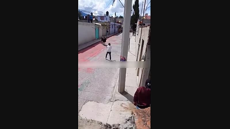 Malloot wordt hard tegen de vlakte geknuffeld als hij een stier uitdaagt