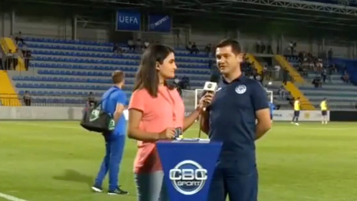 Uit het verleden is wel vaker gebleken dat aan de rand van het voetbalveld iemand interviewen altijd een zekere vorm van risico inhoudt, maar gelukkig wordt er door iedereen adequaat gereageerd!