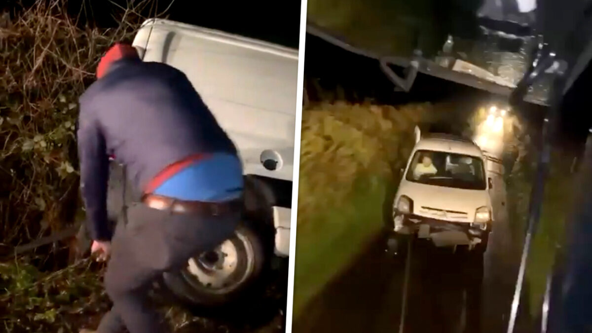 Het is niet de eerste, en sowieso niet de laatste keer, dat iemand in een onbewaakt moment op een donker afgelegen weggetje de bocht mist en in de sloot belandt. Gelukkig zijn er altijd wel vrienden in de buurt die je met alle liefde uit je benarde situatie trekken. #looptnietgoedaf