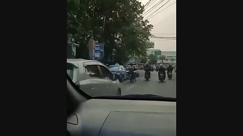 Indonesische taxichauffeur is er klaar mee en zet zijn bolide in z'n achteruit