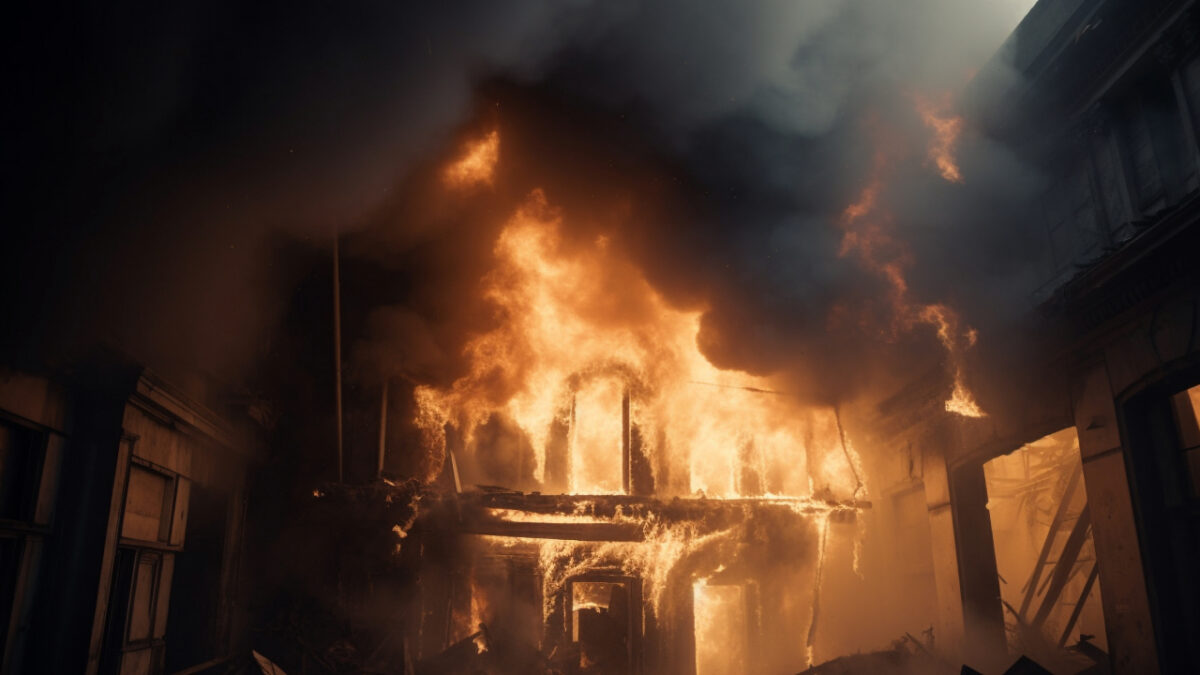De brandweer laat het monumentale gebouw gecontroleerd uitbranden