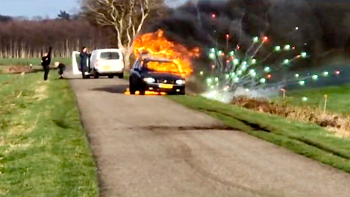 De laatste dagen slaan de liefhebbers van vuurwerk massaal hun voorraden in, maar die handel moet natuurlijk ook op een gegeven moment worden opgehaald. Normaal gesproken gaat dit prima met de auto, maar op de Meeuwenweg in Zuidwolde heeft de lading vlam gevat - zal toch geen peukie zijn geweest? - waarna de auto spontaan afgeschreven kon worden. 🧨