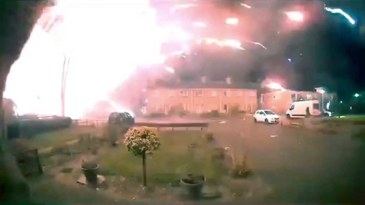 Oud en nieuw zal in het Groningse Midwolda nooit meer hetzelfde zijn nadat rond 1 uur 's nachts op een of andere manier brand is ontstaan in een lanceerinrichting die waarschijnlijk bedoeld was om illegaal vuurwerk af te schieten. De hele bende knalde explodeerde in één keer waarbij ruiten sprongen en auto's in de Anna Maria Horalaan beschadigd raakten. Een deurbelcamera legde het moment van de explosie vast.