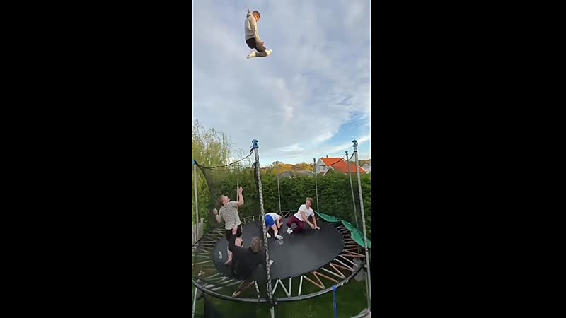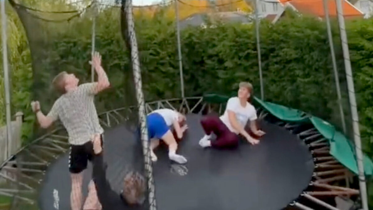 Waarschijnlijk geïnspireerd op talloze video's waarbij het wel goed ging, wij noemen bijvoorbeeld 's werelds eerste succesvolle 8-voudige backflip op een trampoline, dacht vriendengroep ook wel even een succesvolle trampolinelancering uit te kunnen voeren. De zwaartekracht dacht er anders.