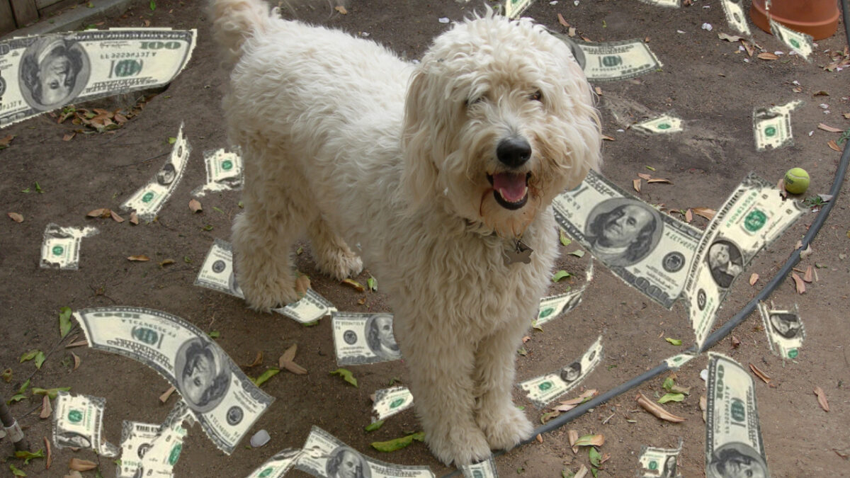 Clayton liet namelijk 4.000 dollar, dat hij had opgenomen om werkzaamheden aan zijn tuin mee te betalen, in een envelop op tafel liggen. de bedoeling was om deze later netjes weg te leggen, maar zover kwam het niet. Nog geen half uur later was de envelop weg en werd de kruising tussen een golden retriever en een poedel teruggevonden met een voldane snuit, omringd door geldsnippers: het beestje had zojuist de vierduizend dollar opgegeten.