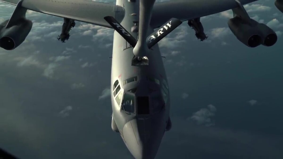 Supervette beelden laten zien hoe je een B52 Stratofortress in de lucht bijtankt