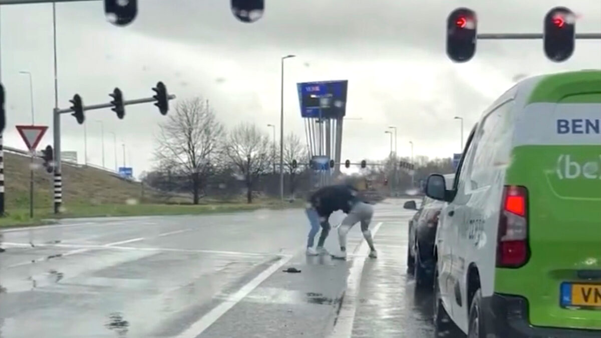Rotterdammers lossen meningsverschil bij stoplicht op z'n Rotterdams op