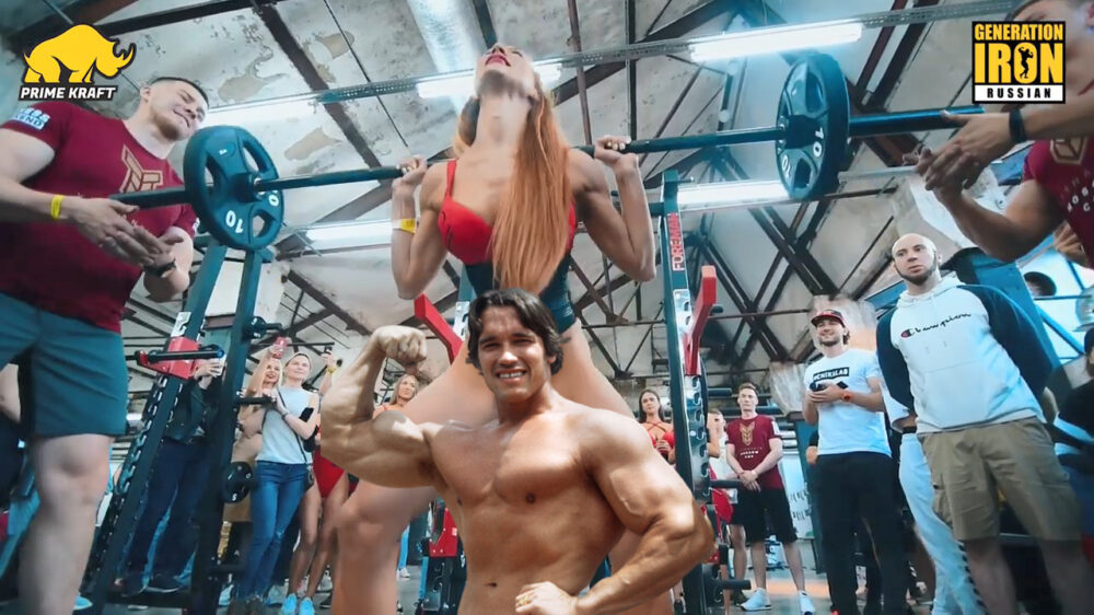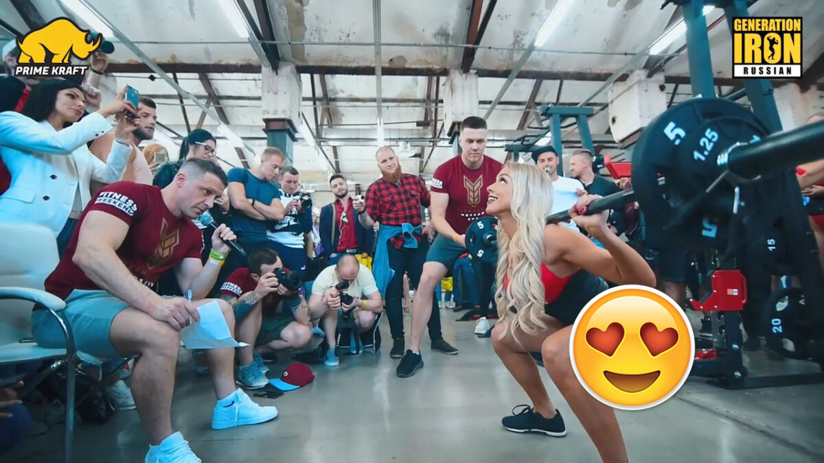 Deze rode Russische badpakken trekken veel bekijks tijdens het gewichtheffen