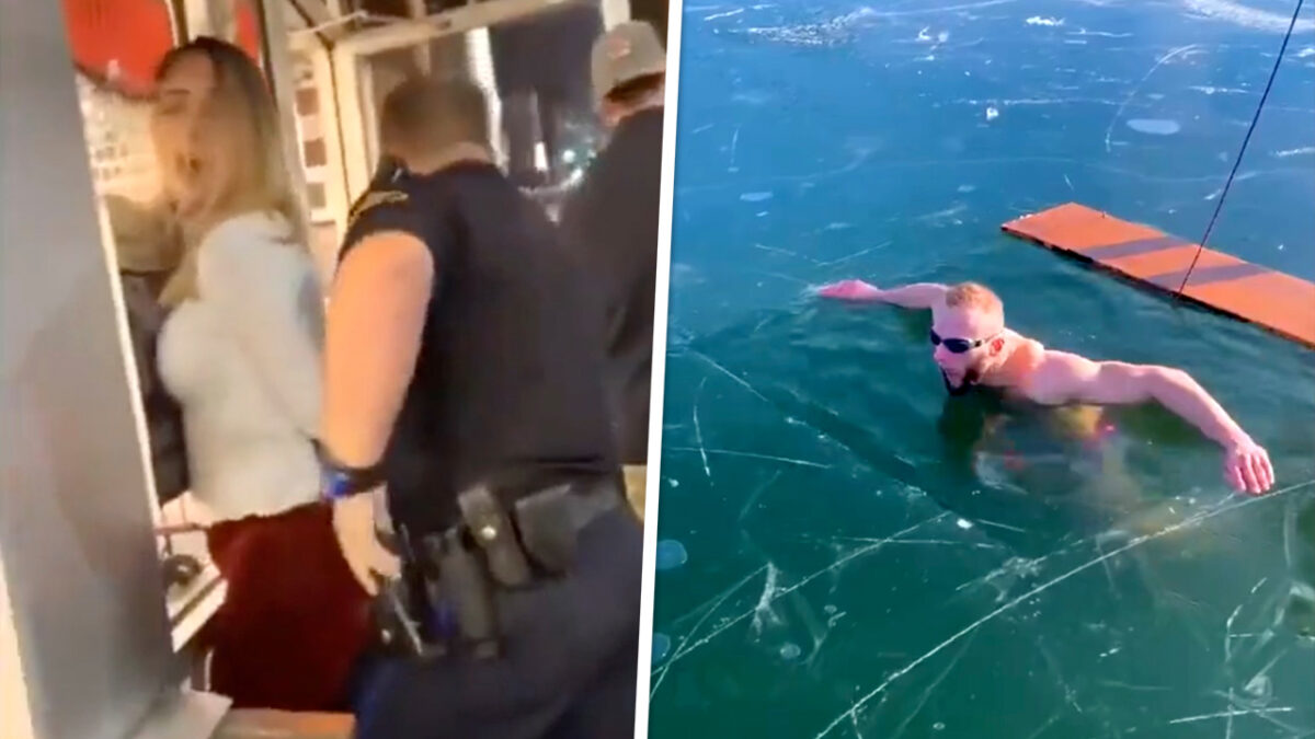 Mag. Niet. Kijken. Terwijl ik toekeek, worstelde een ijszwemmer om het gat in het bevroren meer te vinden, een beeld van 'peak male performance'. Ondertussen voltrok zich een pittige arrestatie door ome agent in de ijzige kou. "Kijk hoe koud het is," merkte iemand op, terwijl zwemmers met mondkapjes voorbijzwommen, veilig maar bizar. Een man met een zware hamer en gladde handen leek een ongeluk te tarten. In de lucht, de verboden wensballonnen, een gevaarlijk schouwspel. Plotseling klonk er een waarschuwing: "Pas op, een golf!" en de chaos was compleet.
