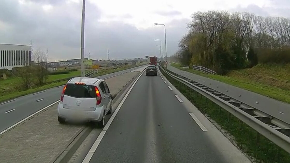 Ongeduldige inhaler wordt door vrachtwagen keihard geblokkeerd