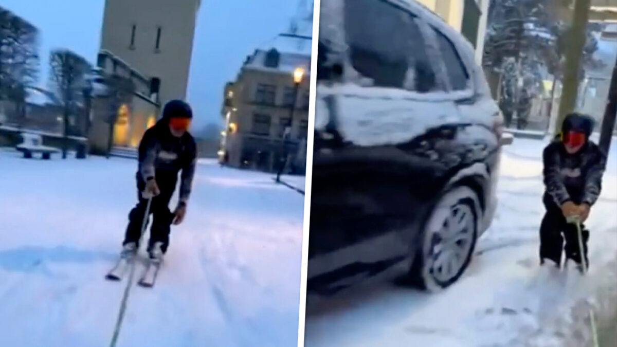 De aangekondige sneeuwbom des doods viel zoals wel vaker weer behoorlijk tegen, maar - in tegenstelling tot de rest van Nederland - ging het qua sneeuw gisteren toch behoorlijk los in Limburg. Wat doe je dan als doorgewinterde ski-liefhebber? Juist, je bindt de lange latten onder en gaat achter een auto hangen!