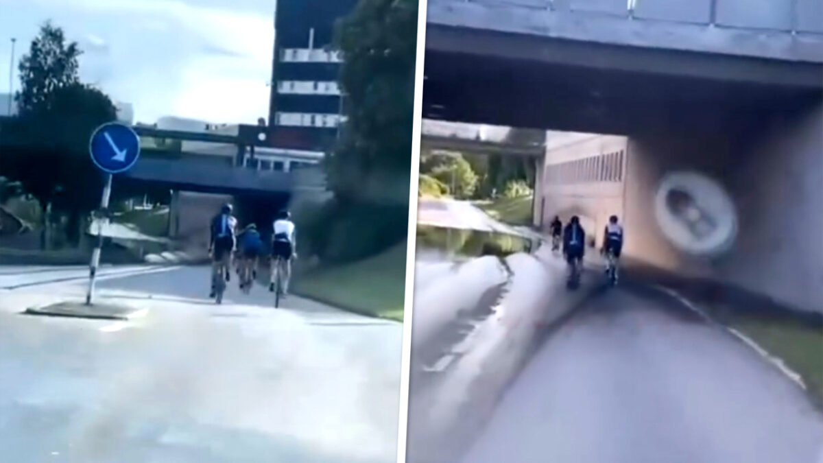 Sadistische automobilist bezorgt wielrenners een zeiknat pak