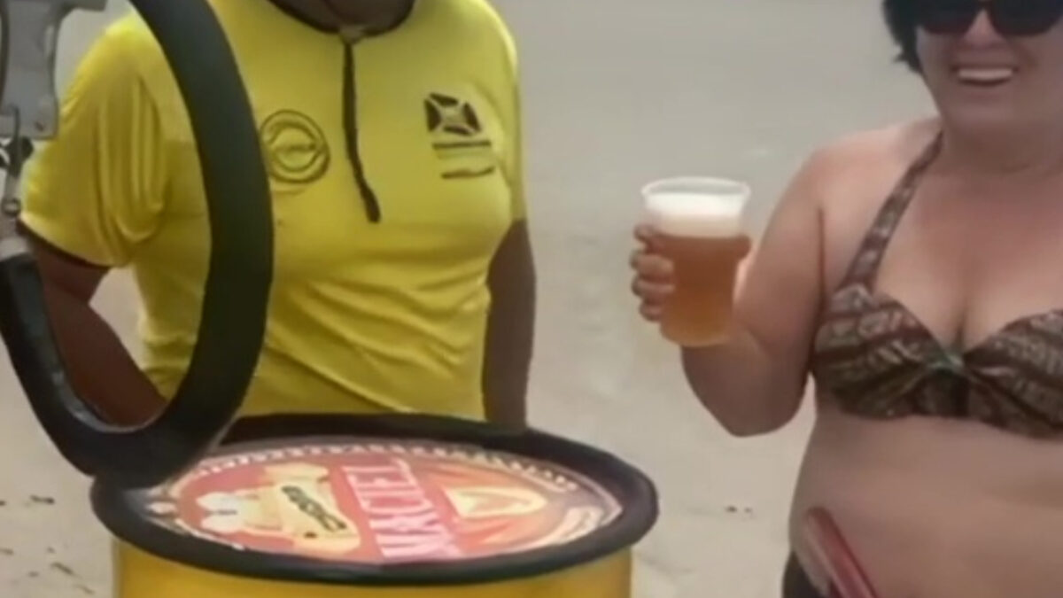 De term "tanken" wordt nog wel eens gebruikt als we stevig aan het bier gaan, maar op dit Braziliaanse strand wordt dat wel heel letterlijk genomen.