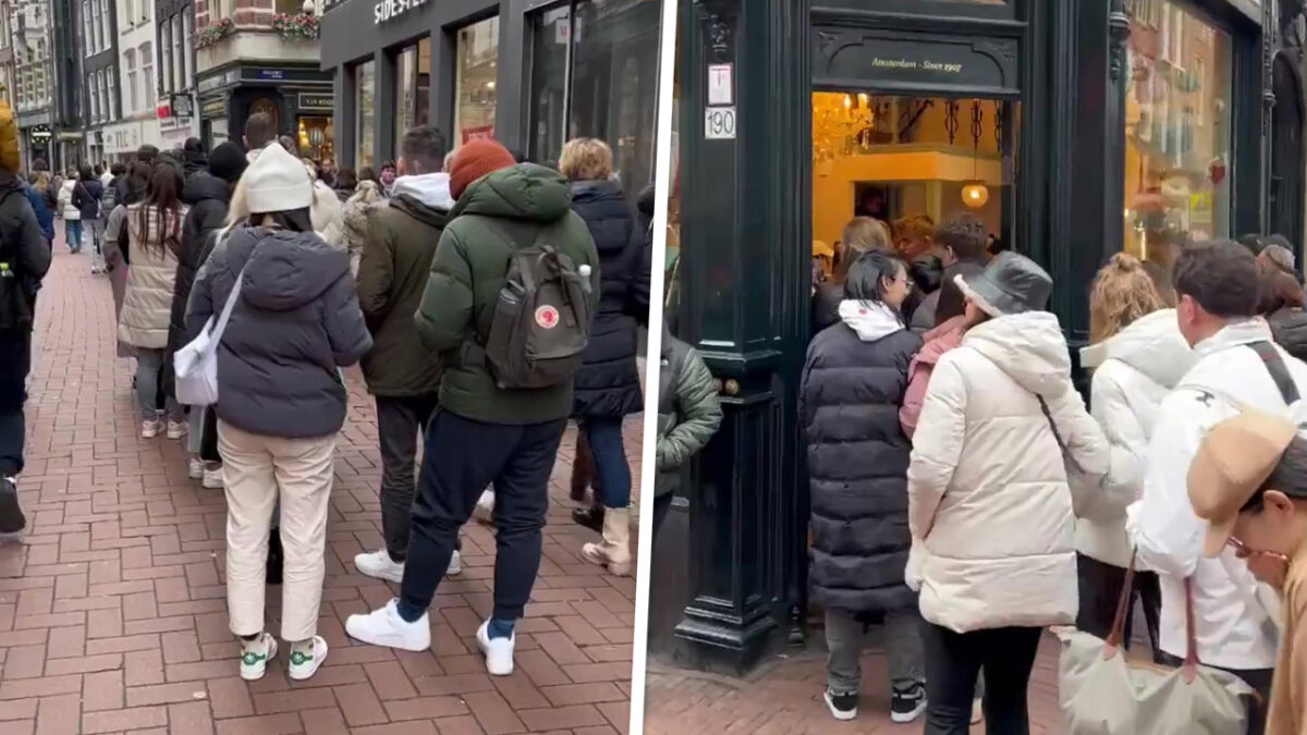 TikTokkers zijn knettergek: urenlang in de rij voor een stroopwafel van 13 euro in Amsterdam