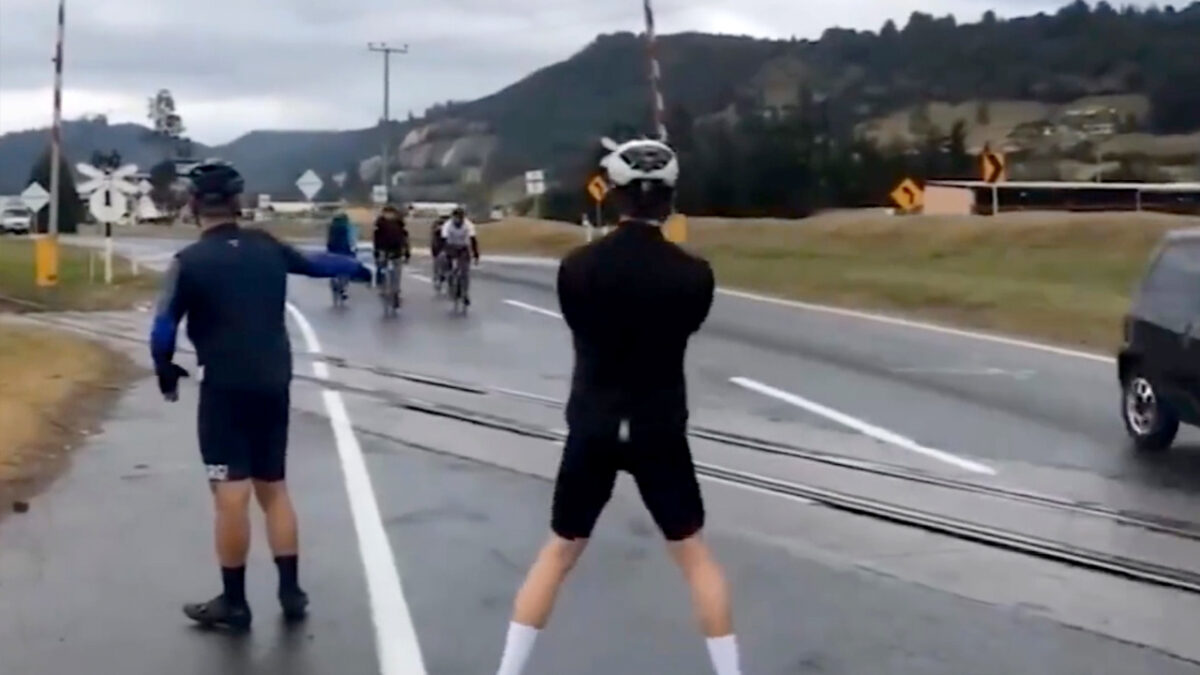 Wielrenners waarschuwen voor rails die door de regen spekglad zijn geworden