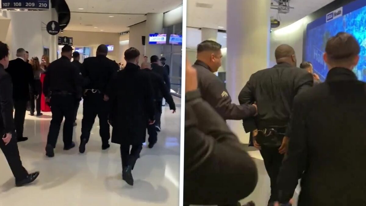 An official tells someone on his team that it’s possible he may be released later tonight from the arena. Unclear if he’s being booked here and what he’s charged with. Trying to find out. #Grammys pic.twitter.com/undjtECFu1