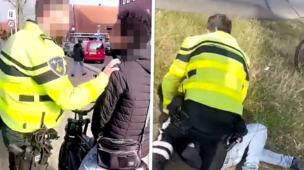 Eigenaar fatbike gaat neus aan neus met agent en wordt naar de grond gewerkt