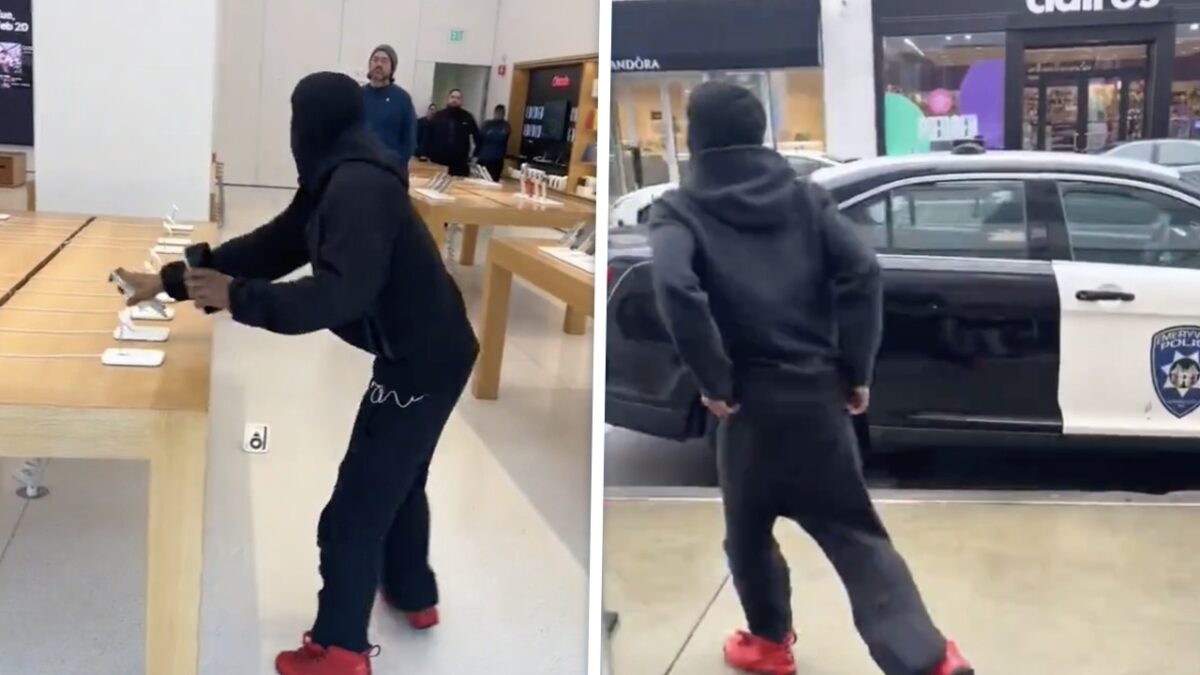 Het moment dat een gemaskerde man 49 iPhones uit een Apple Store jat