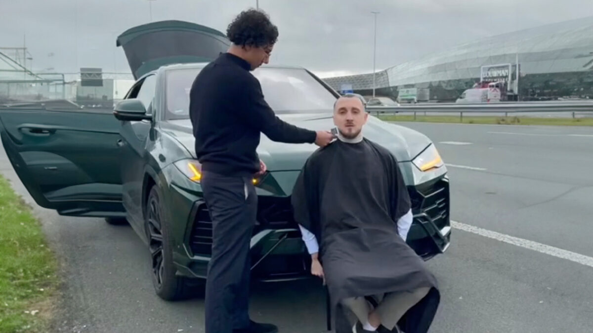 Influencer parkeert zijn Lamborghini op de vluchtstrook om z'n haar te laten knippen