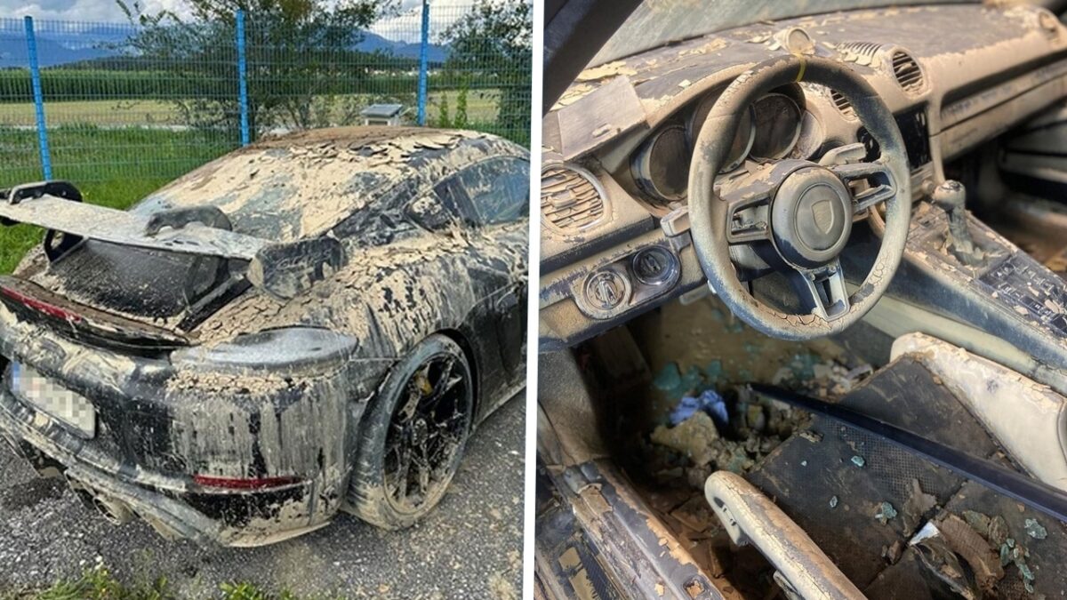 Een Porsche 718 Cayman GT4 RS, met slechts 758 kilometer op de teller, stond 3 dagen lang tot aan het dak in de modder door extreme overstromingen in Slovenië. RS Dynamics, een Duits tuningbedrijf, besloot de uitdaging aan te gaan en de peperdure auto onder handen te nemen.