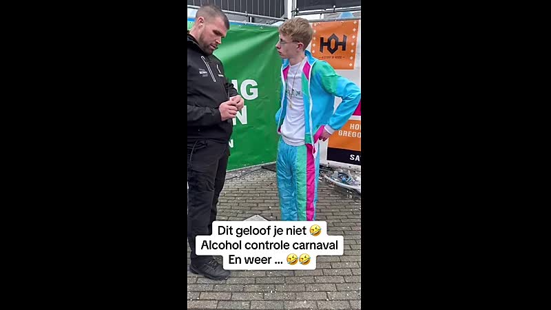 Zul je altijd zien hè; ben je net lekker een middagje carnaval aan het vieren, loop je ineens in een alcoholfuik en moet uitgerekend jij gaan blazen. Gelukkig strijkt hij wel met z'n hand over zijn hart en mag 'ie alsnog naar binnen. 😬