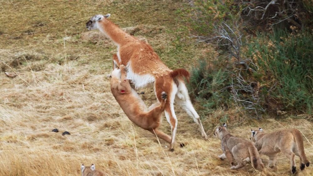 Moeder poema probeert wat op tafel te zetten voor haar groeiende welpen. Het is alleen nog niet zo gemakkelijk aangezien een guanaco (wilde lama) 2 meter groot is en drie keer zwaarder is dan een vrouwelijke poema.