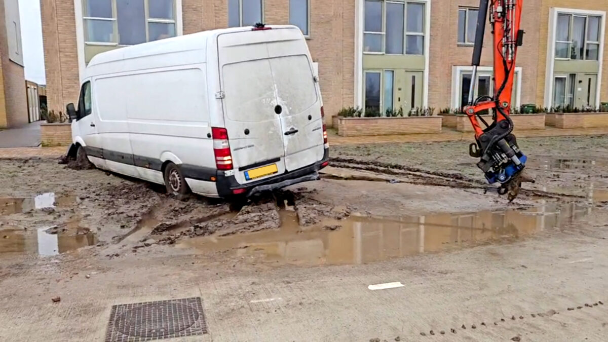 Door een nieuwbouwwijk rondrijden is überhaupt al geen pretje met al die regen van de laatste tijd, laat staan als je in een bestelbusje voor PostNL rijdt. 🫣