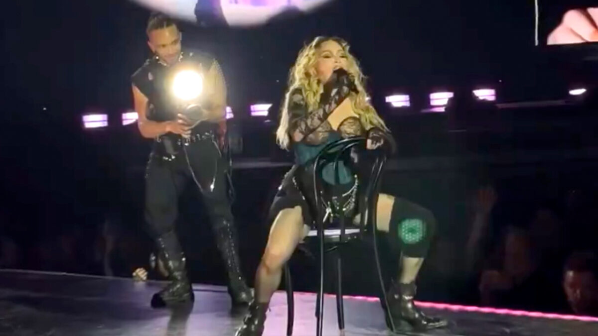 Madonna (65) knikkert van haar stoel tijdens optreden in Seattle