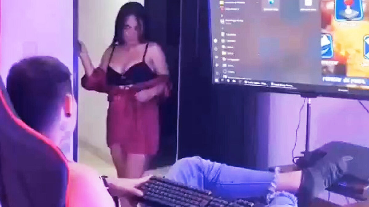 Nu zijn mannen over het algemeen bijzonder snel af te leiden, zeker als er een dame in een verleidelijk setje binnen komt wandelen, maar een echte gamer? Nee, die heeft zijn prioriteiten wel op orde.