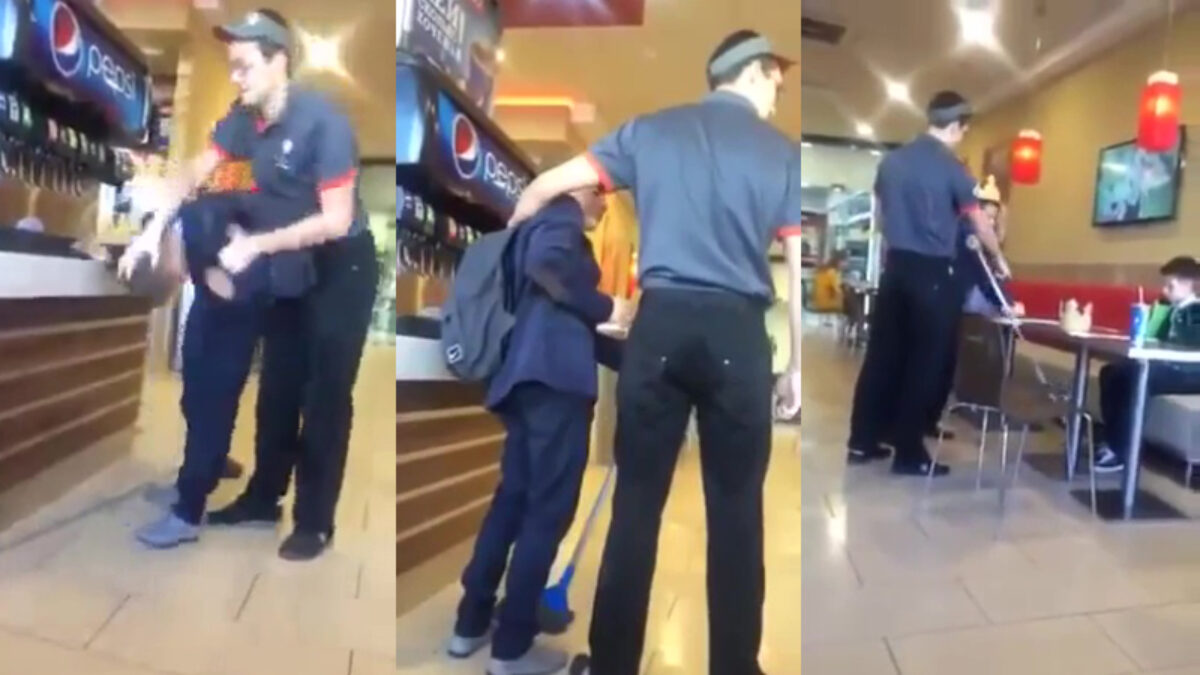Dingetje in de Burger King, ergens in Rusland, alwaar een opgeschoten eikeltje er een teringzooi van maakte. Kun je natuurlijk op z'n Nederlands een keer foei roepen en je de huid vol laten schelden door zo'n klein pleurisventje, maar je kunt hem ook gewoon aanpakken. Bezem in de hand drukken en schoonmaken zul je!